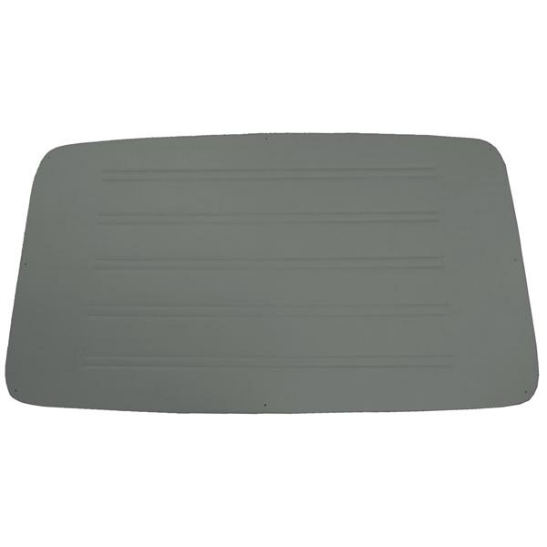 The headliner is made from water-repellent, medium-density fiberboard (pressboard), die-cut to match the original OEM board. It uses dielectric heat-sealed seams for durability.