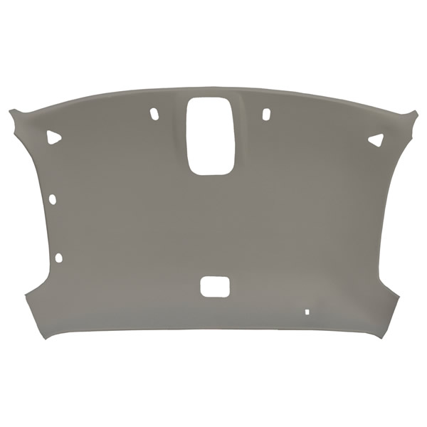 The headliner is molded from ABS plastic and is vacuum-formed at 320 °F to resist warping or distortion under temperature extremes. The design replicates the OEM headliner’s shape and attachment points.