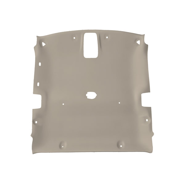 The headliner is molded from ABS plastic and is vacuum-formed at 320 °F to resist warping or distortion under temperature extremes. The design replicates the OEM headliner’s shape and attachment points.