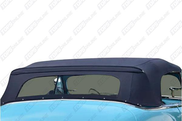 Factory style 2-Piece Top with Horse-Shoe style Zipper Plastic Window. Included with the Top, Wire-On trim & Chrome ends to hide the Staples above rear window bow, below rear window bow & above windshield bow. We offer Original Haartz Stayfast Cloth materials. Other colors can be ordered, please inquire. These Tops are made with matching color binding (edging) & stitching. Custom-made tops with different color binding & stitching can be made, please inquire.