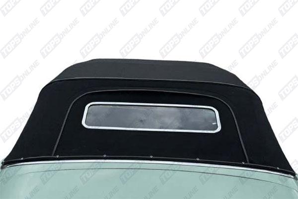 Factory Style Top with Double Thick layer Horse-Shoe style Zipper Rear Window Blank Curtain. New Glass Window not included with the Top, you can RE-Use your own Glass or buy it separately. Included with the Top, Wire-On trim & Chrome ends to hide the Staples above rear window bow & above windshield bow. We offer Haartz Pinpoint Vinyl & Haartz Stayfast Cloth materials. Other colors can be ordered, please inquire. These Tops are made with matching color binding (edging) & stitching. Custom-made tops with different color binding & stitching can be made, please inquire.