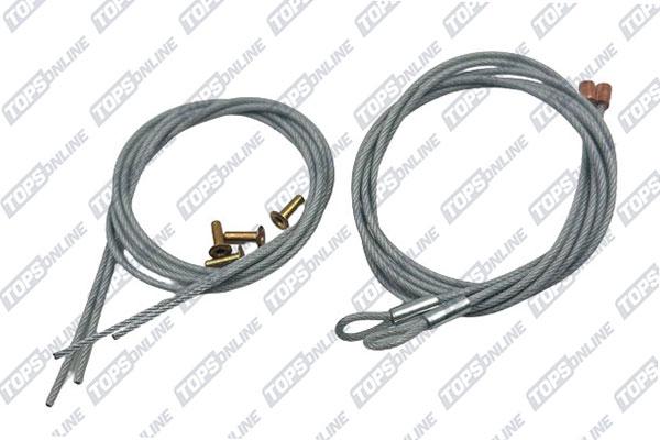 Plastic coated Steel side Top Cables, Side Tension Cables are threaded into pocketed hems on the Top that run along the side windows, Rear Bracket Cables are threaded into pocketed hems on the Top that run along the rear quarter windows. The ends of the Cables hold the top to the frame. You can re-use your existing Top Cables if they are in good shape. Side Tension Cables & Quarter Cables sold as 4-Piece set, buy one order per car. Top Cables are included with our Tops, no need to buy them separately.