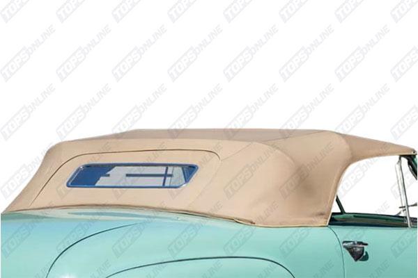 Factory Style Top with Double Thick layer Zipper Rear Window Blank Curtain. New Glass Window not included with the Top, you can Re-Use your own Glass or buy it separately. Included with the Top, Wire-On trim & Chrome ends to hide the staples above and below rear window bows, also, 14 Snap Caps & Sockets. We offer Haartz Pinpoint Vinyl & Haartz Stayfast Cloth materials. These Tops are made with matching color binding (edging) & stitching. Custom-made tops are available as well: if you would like other colors and materials for the top, binding, and stitching, please inquire.