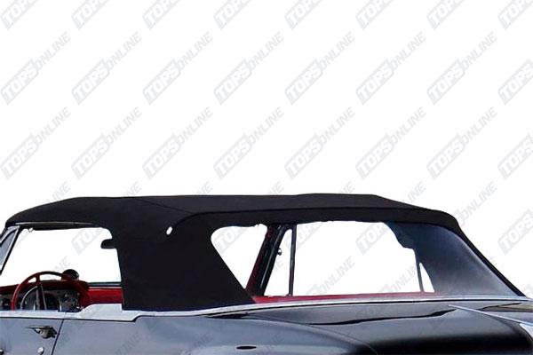 Factory Style 2-piece Convertible Top With Zipper Plastic Window. Top and Window have installation alignment marks. Included with the convertible top: Wire-On trim & Chrome ends to hide the staples above the rear window bow. Factory Original material is the Haartz Pinpoint Vinyl, we also offer Haartz Stayfast Cloth material. Other colors can be ordered, please inquire.