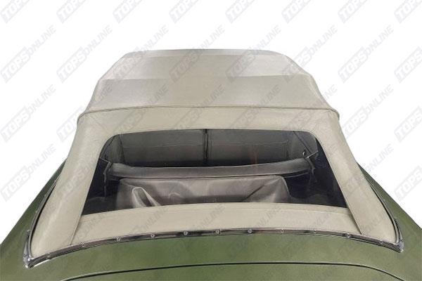 Factory Style 2-piece Convertible Top With Zipper inward curved Glass Window. Top and Window have installation alignment marks. Included with the convertible top: Wire-On trim & Chrome ends to hide the staples above the rear window bow. Factory Original material for 1967 model is the Haartz Pinpoint Textured Vinyl, for 1968 & 1969 models is the Haartz Crush Vinyl, we also offer Haartz Stayfast Cloth material, all 3 materials are interchangeable. Other colors can be ordered, please inquire.