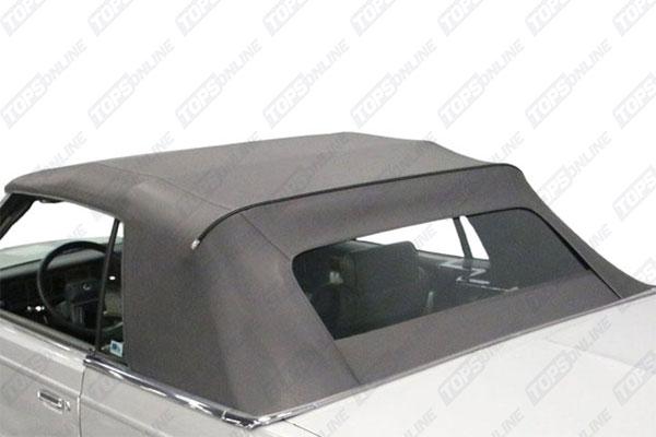 Factory Style 2-piece Convertible Top With Zipper Glass Window. Included with the convertible top: Wire-On trim & Chrome ends to hide the staples above the rear window bow, and matching top material to use for the front header-seal (the front header-seal is not the front Rubber Weather Seal). Original material is the Haartz Pinpoint Textured Vinyl. Other colors can be ordered, please inquire