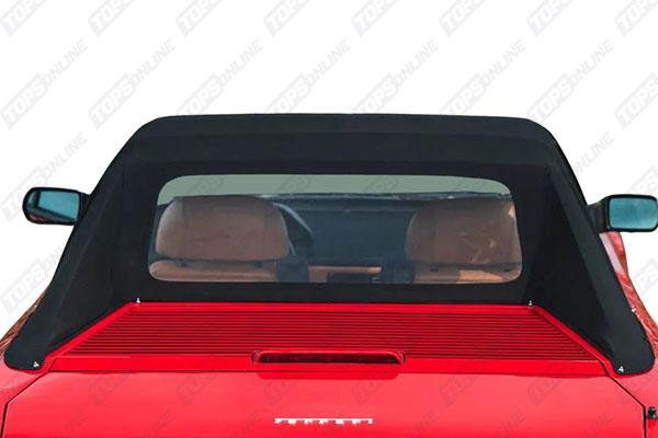 Tops are made to Ferrari specifications, offering choice between German Sonnenland Cloth (the original OEM material) or Haartz Stayfast Twillfast Cloth. Each features heat‑sealed seams, factory‑style hand‑rolled vinyl bindings, and a clear plastic rear window for authenticity and durability.