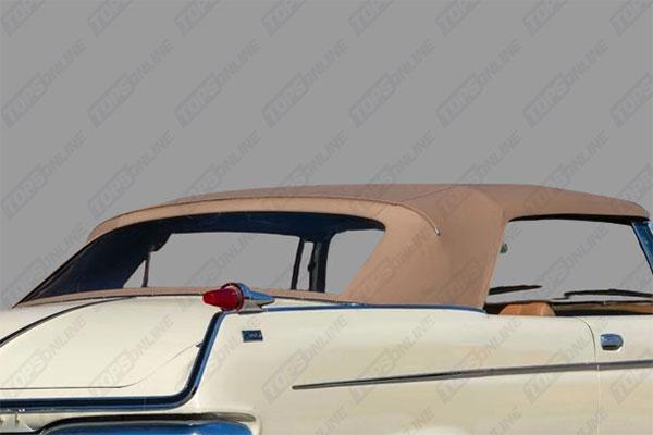 Factory Style 2-piece Convertible Top With with Zipper Plastic Window. Included with the convertible top: Wire-On trim & Chrome ends to hide the staples above the rear window bow. Other colors can be ordered, please inquire.