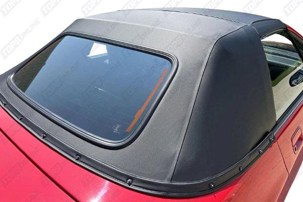The rear/top sections come in either Haartz Pinpoint Textured Vinyl (factory original) or Haartz Stayfast Cloth. Colors include black and dark blue (vinyl) and black, dark blue, or bordeaux (cloth).