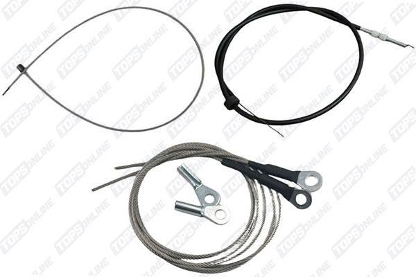 Plastic coated Steel Top Cables, Side Tension Cables are threaded into pocketed hems on the Top that run along the side windows, Rear Center Pull Cable attaches to the Bow above Rear Window and the Bow below Rear Window for Tension, Bowden Cable (Convertible Top Lid Cover Release Cable) attaches to the Lid release Handle & Lid lock mechanism to open Lid Cover. Side Tension Cables sold as a pair (1 pair per Top), Rear Center Pull & Lid Cover Release Cables sold as each (1 each per Top).