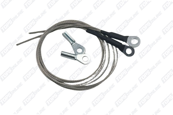 Plastic coated Steel Top Cables, Side Tension Cables are threaded into pocketed hems on the Top that run along the side windows, Rear Center Pull Cable attaches to the Bow above Rear Window and the Bow below Rear Window for Tension, Bowden Cable (Convertible Top Lid Cover Release Cable) attaches to the Lid release Handle & Lid lock mechanism to open Lid Cover. Side Tension Cables sold as a pair (1 pair per Top), Rear Center Pull & Lid Cover Release Cables sold as each (1 each per Top).