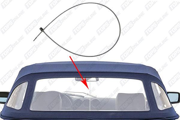 Plastic coated Steel Top Cables, Side Tension Cables are threaded into pocketed hems on the Top that run along the side windows, Rear Center Pull Cable attaches to the Bow above Rear Window and the Bow below Rear Window for Tension, Bowden Cable (Convertible Top Lid Cover Release Cable) attaches to the Lid release Handle & Lid lock mechanism to open Lid Cover. Side Tension Cables sold as a pair (1 pair per Top), Rear Center Pull & Lid Cover Release Cables sold as each (1 each per Top).