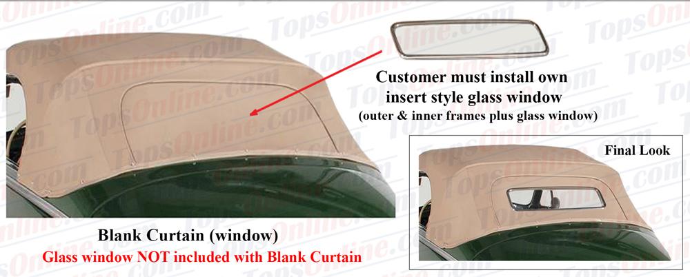 Blank Curtain: Rear window section is made with Solid Double thick material, for those with a rear window frame and glass (outer & inner frames with internal grippers to hold topping material) that can be mounted to the blank curtain. Glass window not supplied with the Top, it can be purchased separately.
