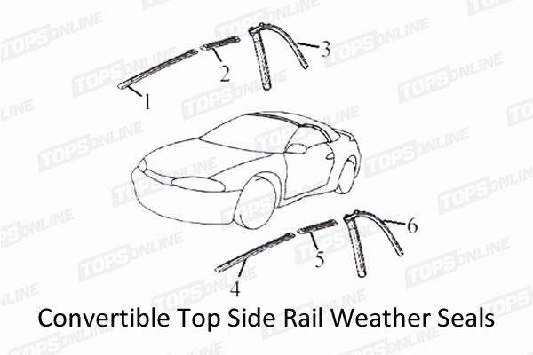 Convertible Top Side Rail Weather Seals - fit 1995 thru 1998 Toyota Paseo & Cynos (ASC Conversion)