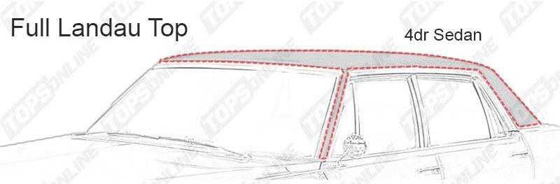 This is a full Landau top, meaning the vinyl covers the entire roof, including the C-pillars. It includes pre-cut vinyl for the A-pillars and a valance section below the rear window, offering complete coverage and authentic styling.
