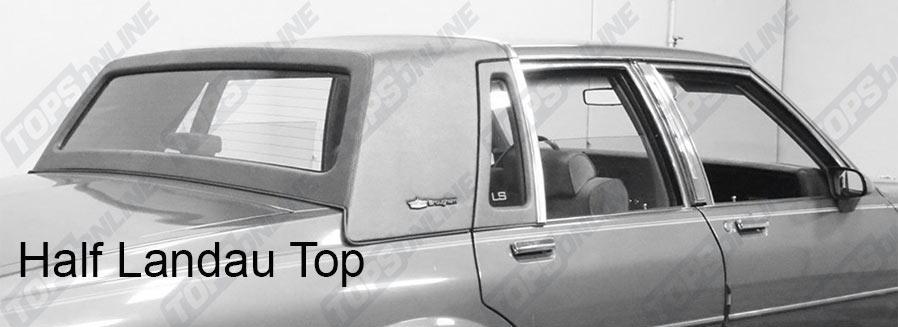 Landau Top Details: Made with one seam around rear window & includes rear door Cap Covers as original. Material Note: These vinyl tops are made with Haartz fuzzy backed vinyl Top material.