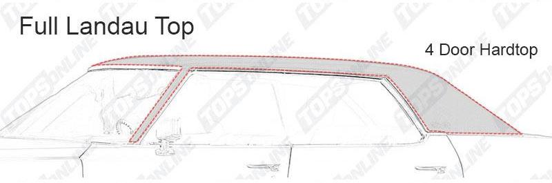 Landau Top Details: Made with two heat-sealed seams (one seam along each side), includes A-Pillar Vinyl & below rear window Valance Vinyl as original. Material Note: We offer this Top with Fuzzy backed Vinyl and without Fuzzy backed Vinyl materials.