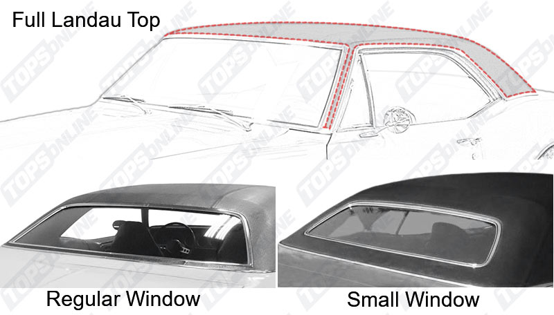Please Read: These Tops are made with Non-original style Narrow deck seams Original wide Vinyl materials no longer available. Landau Top Details: Made with Two Seams on the Deck (one each side), Includes A-Pillar Vinyl & below rear window Valance Vinyl. Material Note: We offer Boar Textured Non-Fuzzy Backed Vinyl & Levant Textured Fuzzy Backed Vinyl materials. If you’re not sure which material & color to order please ask for sample swatch to avoid returns and restocking fees. Other colors can be made, please inquire.
