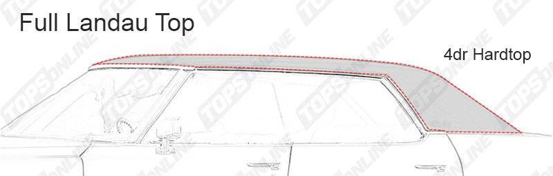 Landau Top Details: Made with two heat-sealed seams (one seam along each side), includes below rear window Valance Vinyl as original. Material Note: These vinyl tops are made with Haartz fuzzy backed vinyl Top material.