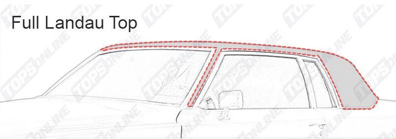 Note: These Top covers can be used for models with Full or 3/4 Tops. Landau Top Details: Made with two heat-sealed seams (one seam along each side) & A-Pillar Vinyl as original. A-Pillar Note: A-Pillar can be removed easily during installation if your car model didn't come with Vinyl on A-Pillars from factory. Material Note: These vinyl tops are made with Haartz fuzzy backed vinyl Top material.