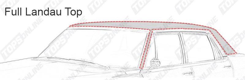 Note: These Top covers can be used for models with Full or 3/4 Tops. Landau Top Details: Made with two heat-sealed seams (one seam along each side) & A-Pillar Vinyl as original. A-Pillar Note: A-Pillar can be removed easily during installation if your car model didn't come with Vinyl on A-Pillars from factory. Material Note: These vinyl tops are made with Haartz fuzzy backed vinyl Top material.