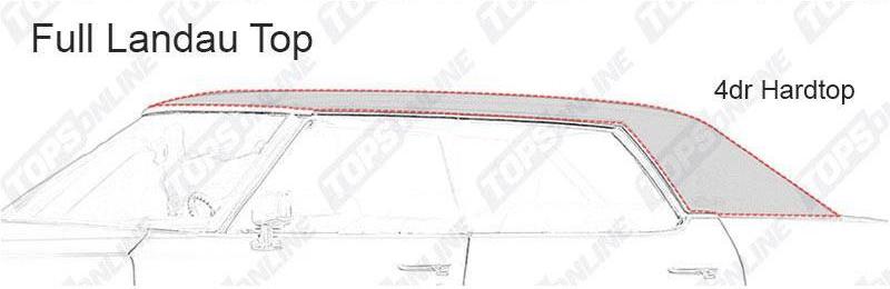 Landau Top Details: Made with two heat-sealed seams (one seam along each side) & below rear window Valance Vinyl as original. Material Note: These vinyl tops are made with Haartz fuzzy backed vinyl Top material.