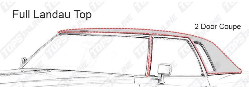 Note: Full Top can be used for Half Top models by only using rear section of the Top. Landau Top Details: Made with one heat-sealed seam on the center of the Deck, includes A-Pillar Vinyl & below rear window Valance as original. Material Note: These vinyl tops are made with Haartz fuzzy backed vinyl Top material.