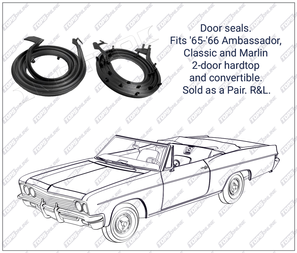 This replacement weatherstripping is designed specifically for 1966 AMC Marlin 2-door hardtop models.