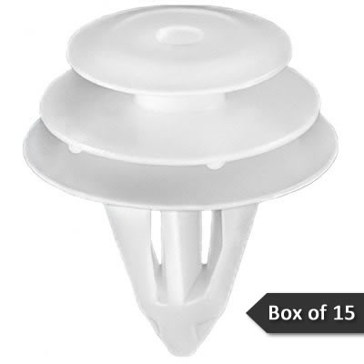 This is a box of 15 trim panel retainers. Useful for a variety of applications, it is OE for Nissan & Infiniti models (1999-present). It matches Nissan OE Part Number 01553-09791. Although this retainer is OE for Nissan vehicles, it is universal and can be used on any vehicle or application requiring this type of retainer and meeting these specifications.